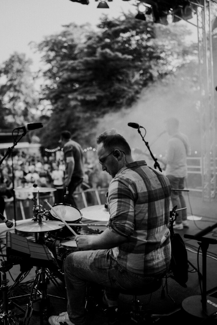 Er gibt den Herzschlag des Polka an: Halb Mensch, halb Drum-Computer - halb Uhrwerk, halb Metronom. Eins mit dem Schlagzeug, eins mit dem Takt. Unser Fundament im Hintergrund!